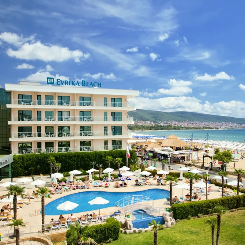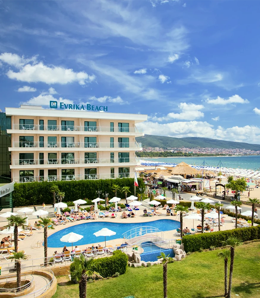 Evrika Beach Club Hotel is a vibrant seaside retreat, combining the charm of the Bulgarian Southern Black Sea coast with the all-embracing comfort of a modern beachfront resort. Set in a privileged location in the northern part of Sunny Beach, the complex welcomes its guests with an atmosphere of freedom, summer ease and genuine hospitality.