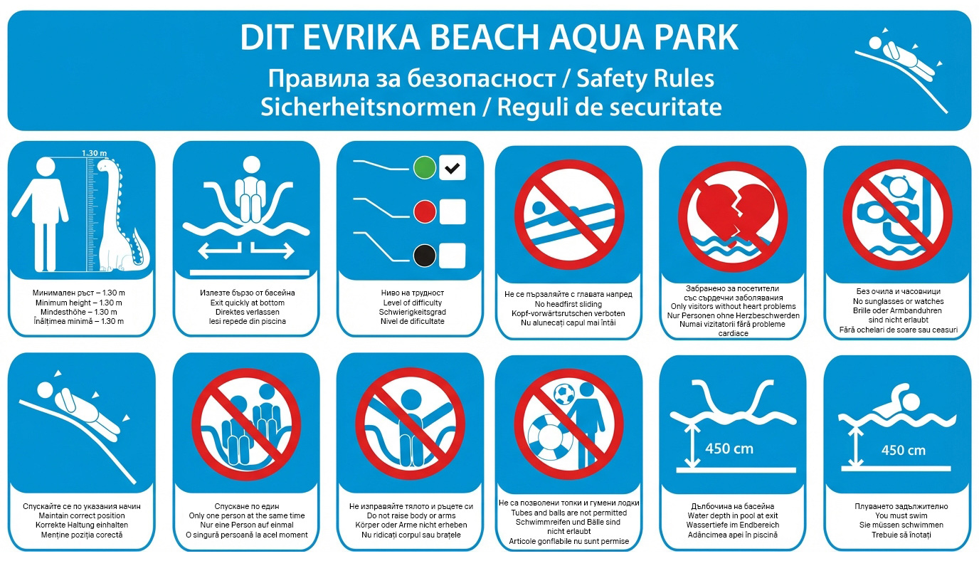 The Aquapark at Evrika Beach Club Hotel is the ultimate highlight of the summer and a favorite attraction for guests of all ages. Designed to deliver unforgettable emotions, it offers a vibrant world of water fun, excitement and shared moments.